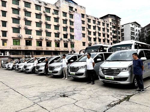 6月3日9:38,南縣湘北汽車站停車坪有序停放了10臺全新的7座新能源電車。這是南縣客運分公司“南縣至益陽”線定制客運車輛換新儀式現場。