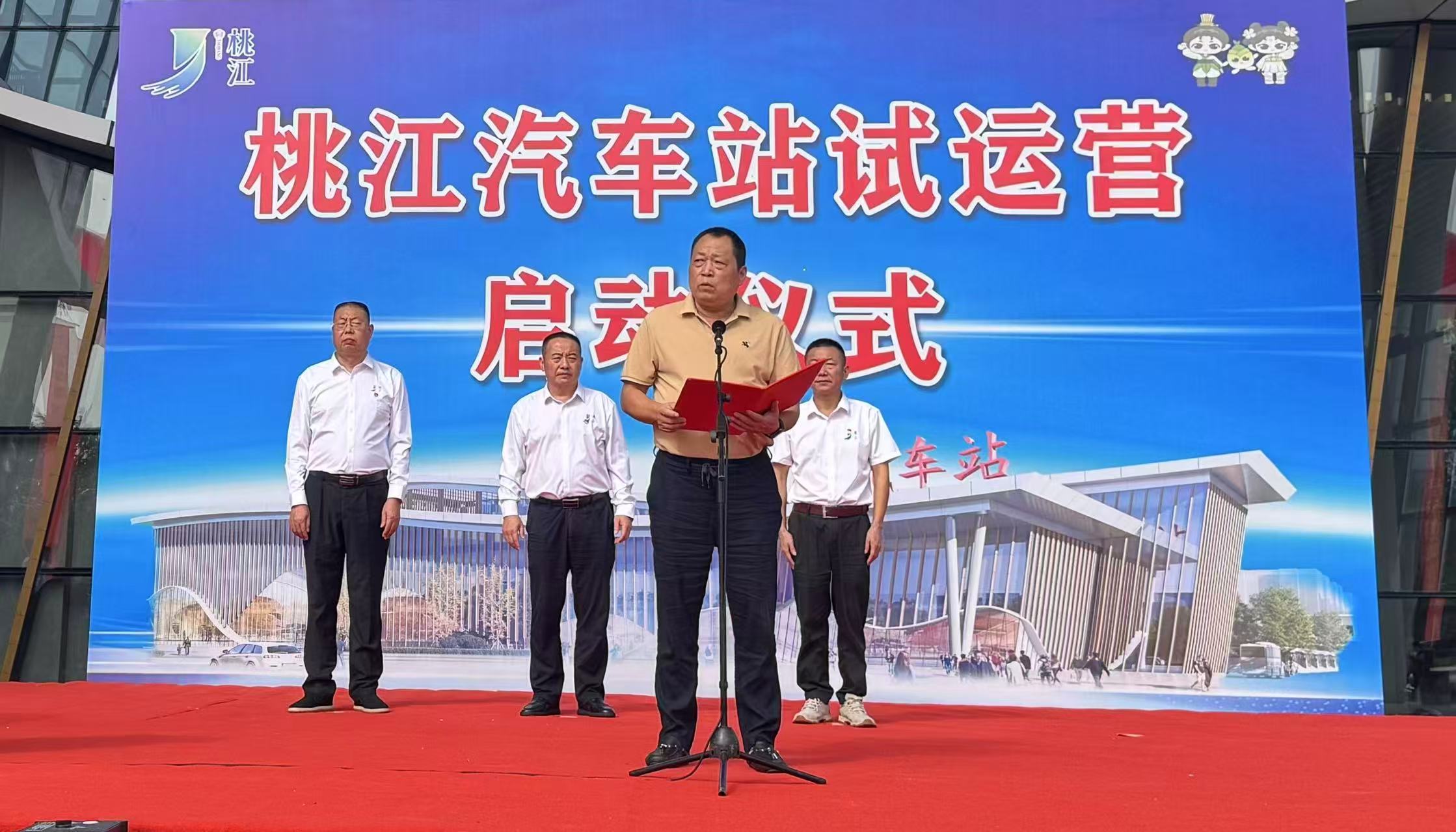 啟動儀式由桃江縣政府辦黨組成員、副主任曾小平主持;縣交通運輸局黨組書記、局長胡鶴鳴和益陽湘運集團股份有限公司董事長郭躍明分別致辭;桃江縣委常委、常務(wù)副縣長熊躍明宣布該站正式啟動,并與郭躍明一起為車站揭牌。