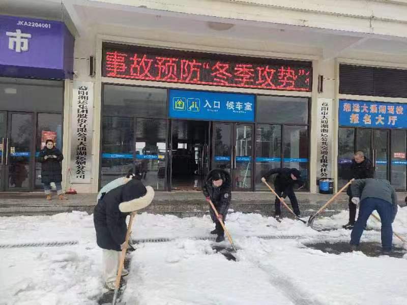 為保群眾出行安全,大通湖運輸分公司客運車輛已停運,但為方便上門問詢的乘客,公司黨支部書記、經(jīng)理毛斌帶領(lǐng)公司上下,拿著鐵锨、雪鏟、掃帚齊心協(xié)力清掃站前、站坪、進出口等處積雪,大家不畏寒冷,干勁十足,經(jīng)過一個多小時努力,為旅客鏟出了一條便捷安全的道路,充分發(fā)揮著基層黨組織黨員模范作用,推動主題教育落到實處。 (吳 輝)